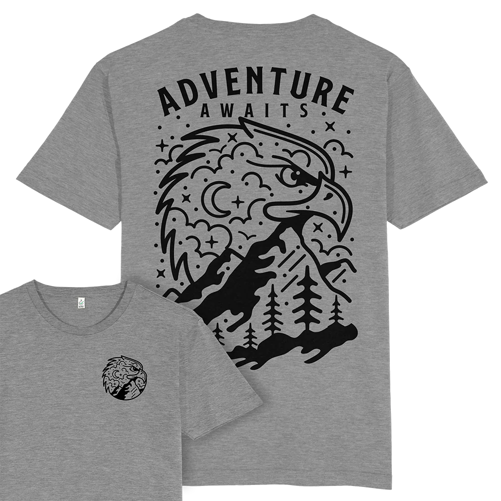 - Adventure Awaits Eagle Design printed on the back with pocket print on the front