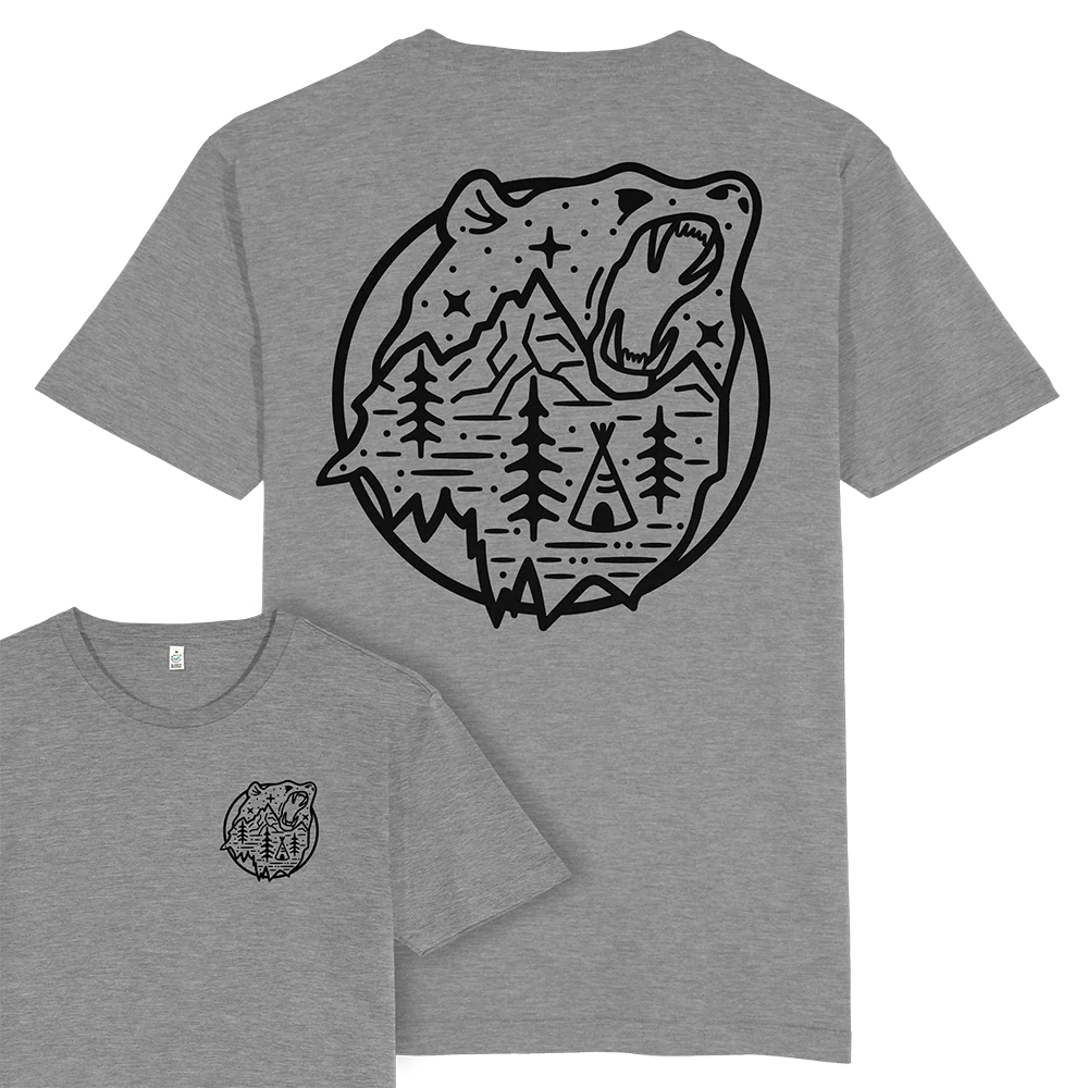- Bear Mountain Scene Design printed on the back with pocket print on the front