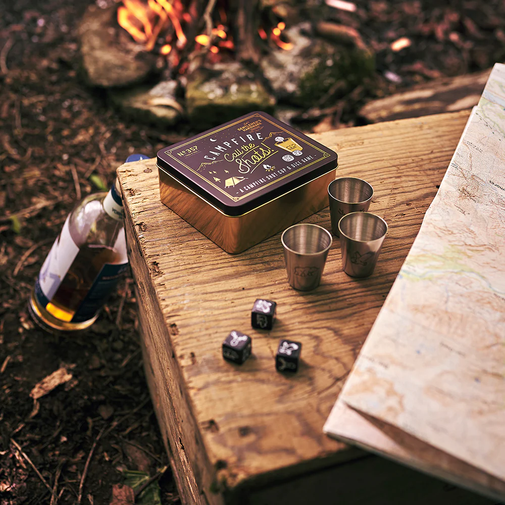 Gather around the campfire with friends to see who will 'Call The Shots' with this Campfire Call The Shots Game from Gentlemen's Hardware. Choose your spirit animal and then roll the dice to match. IncludesĀ 3 x 30ml shot cups andĀ 3 x spirit animal dice. Packaged in stylish gift tin.