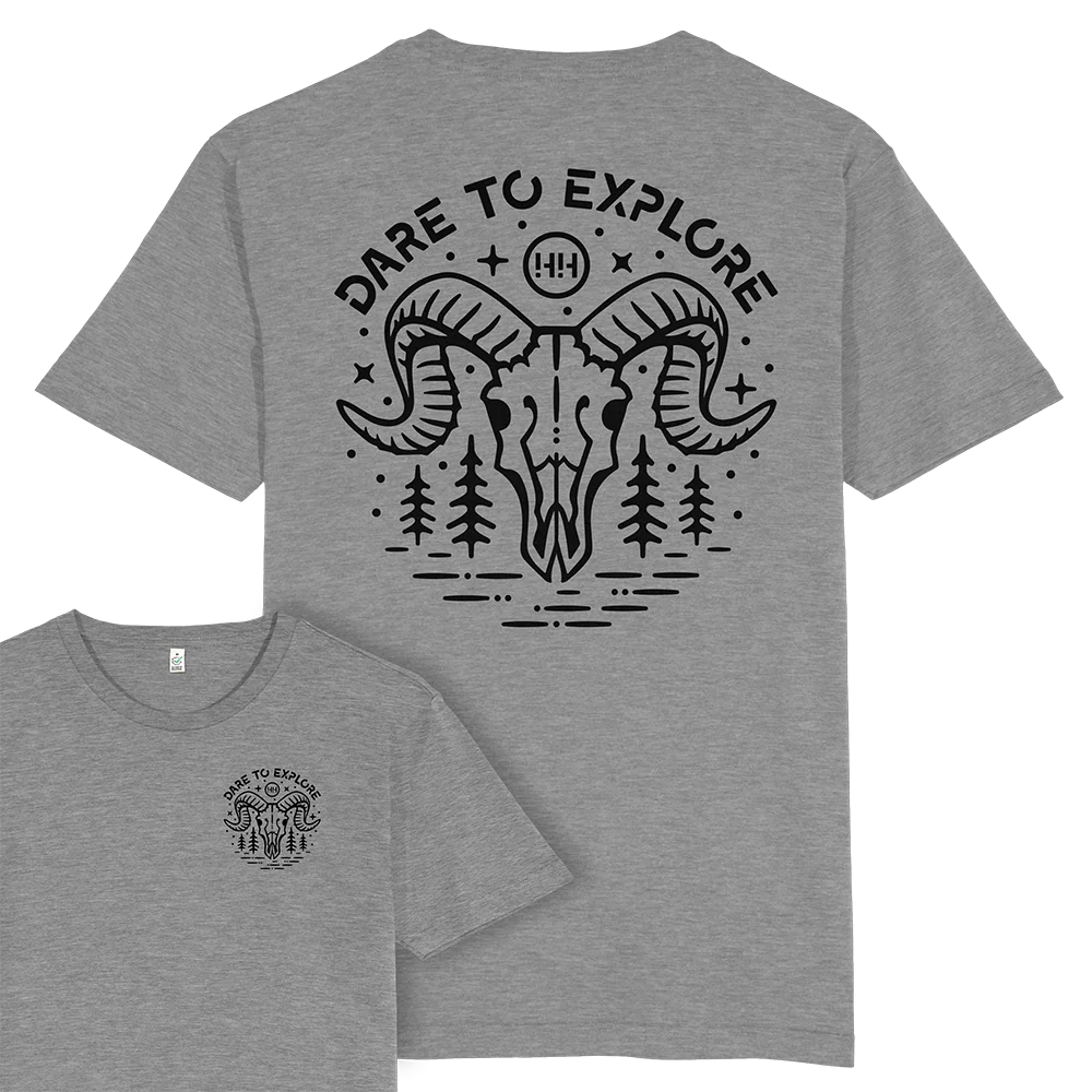 - Dare to Explore Ram Skull Design printed on the back with pocket print on the front